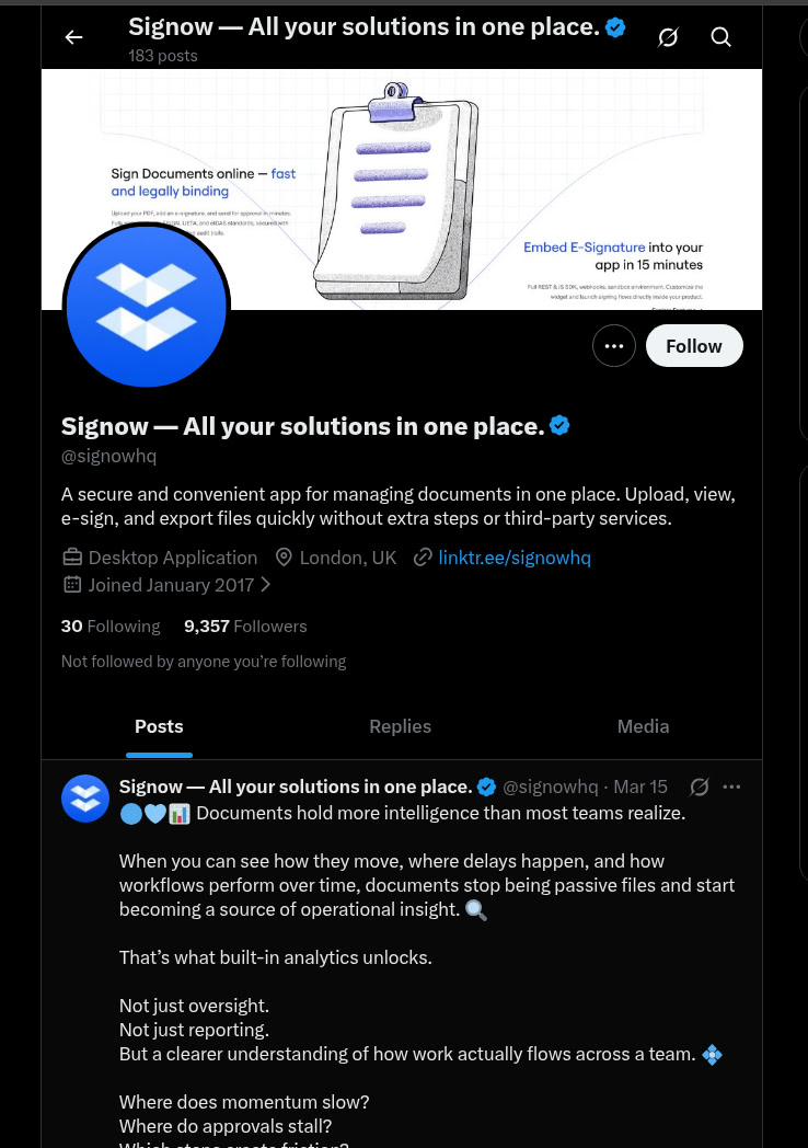 The fake document signing application was used by threat actors impersonating a real VC firm. Attackers approached the victim on Telegram with a highly personalized job offer, referencing his past public work in detail. The conversation then moved to X (Twitter) where after establishing trust, attackers sent a malicious link - a fake DocuSign page. When their target flagged the link as suspicious, attackers immediately deleted all chat history and blocked him.