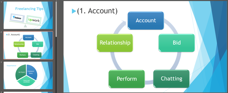 In addition to these, a PowerPoint presentation titled “Freelancing” was also found, directly related to this activity. It outlines the hiring process with the group, how it is expected to be conducted, and the workflow that should be followed.