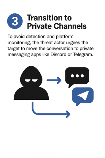 • Mandate Platform Use: Implement a strict policy that all candidate communication and work instructions must remain on the official job platform until a contract is fully signed and verified. Any request to shift immediately to unmonitored apps (Discord, Telegram) should be a red flag.