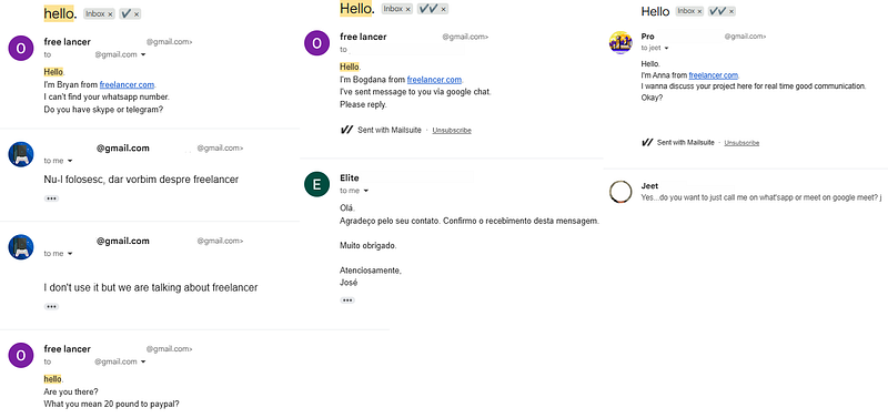 Just like this example, there are many instances where job search platforms are used to recruit individuals. In the following image, it is evident that they approach users they are monitoring on employment platforms — in this case, Freelancer.
