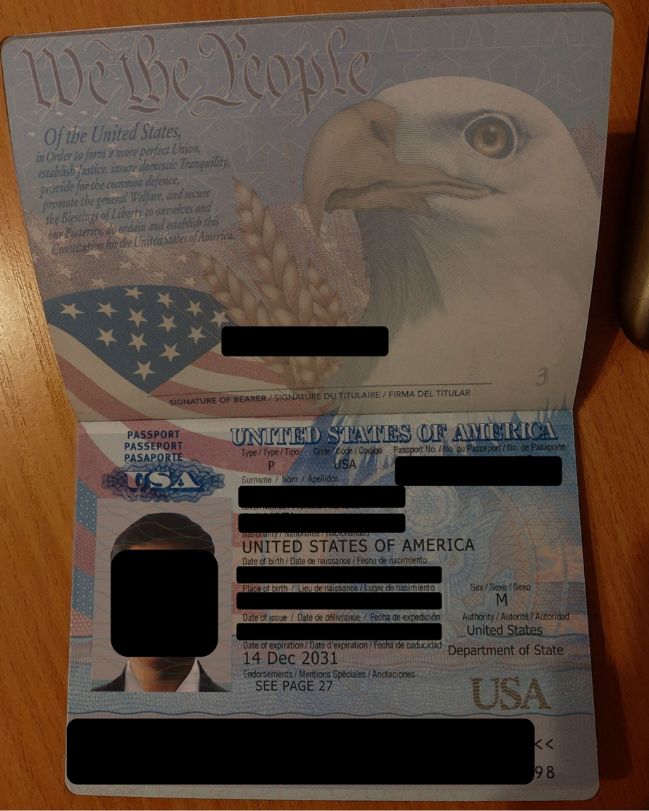 Compared to the previous document, this “IT recruiter” also appears to have used legitimate identities. In some cases, there is no need to rely on AI-generated documents. In the example below, the individual shared a driver’s license, a passport, and a U.S. passport card. The following image shows a genuine document, which differs from the earlier forgery by displaying natural shadows, reflections, and folds that are very difficult to reproduce: