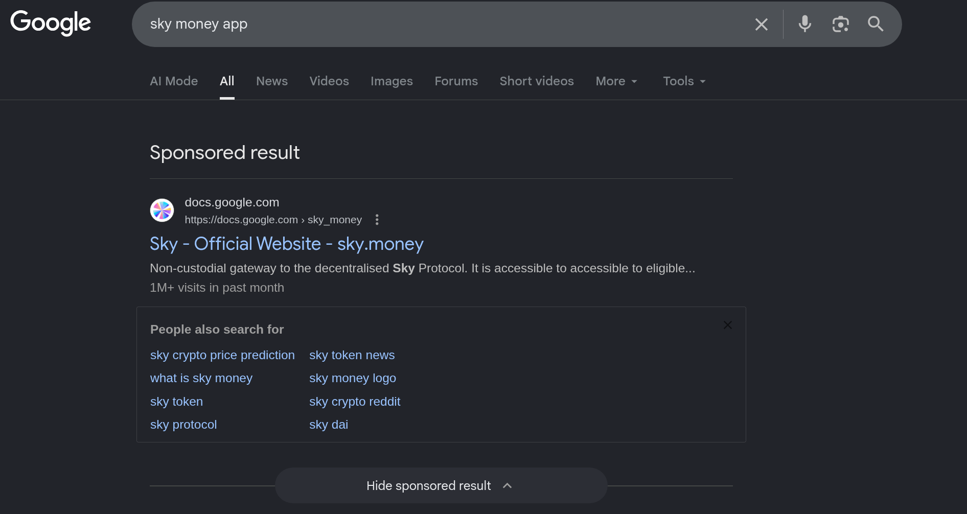| 317 | https://sites[.]google[.]com/view/scrt-chk-987sa | Mar 22 2026 | Sky Money | |