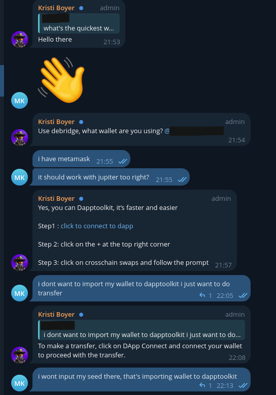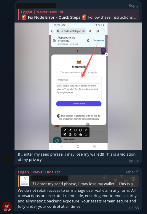 In the case described above, the administrator went the extra mile to explain that it was, in fact, "safe" to input a seed phrase on their platform. However, the user remained unconvinced, especially given the financial loss they had already suffered.