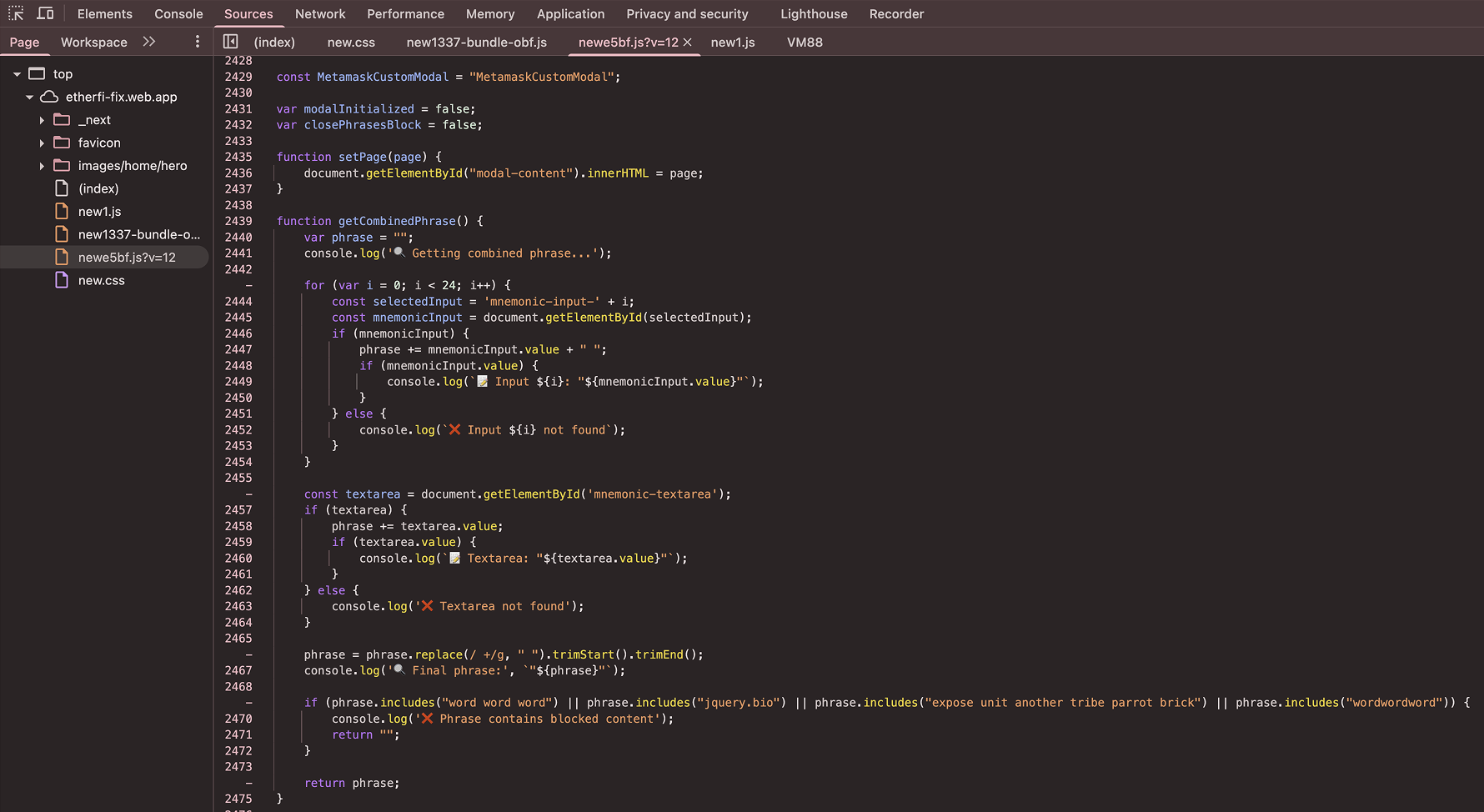 Under the hood, these tools are often very simple: they have a hardcoded Telegram bot API token used to deliver the stolen seed phrase to a private chat on Telegram.
